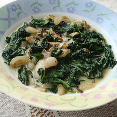 Packed with the dark leafy greens, one bowl of creamed spinach is equal to two whole bags of fresh!